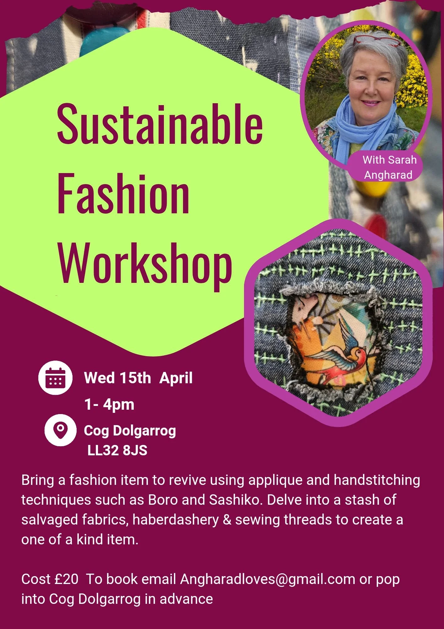 Our first ever Sustainable Fashion Workshop with Sarah Angharad. Bring a fashion item to revives using appliqué and handstitching techniques such as Boro and Sashiko. Delve into a stash of salvaged fabrics, haberdashery & sewing threads to create a one of a kind item.